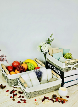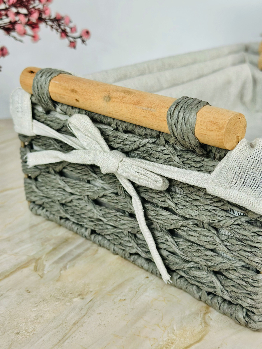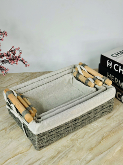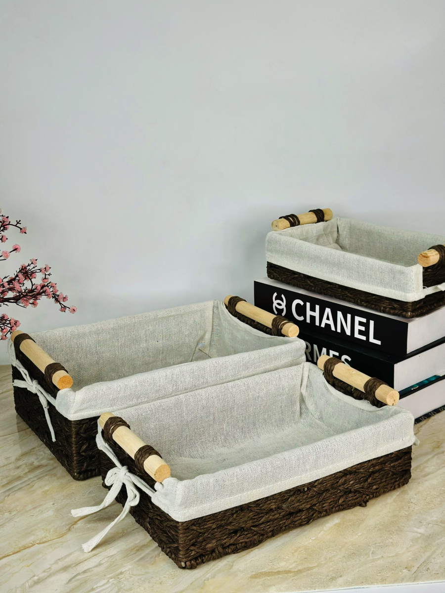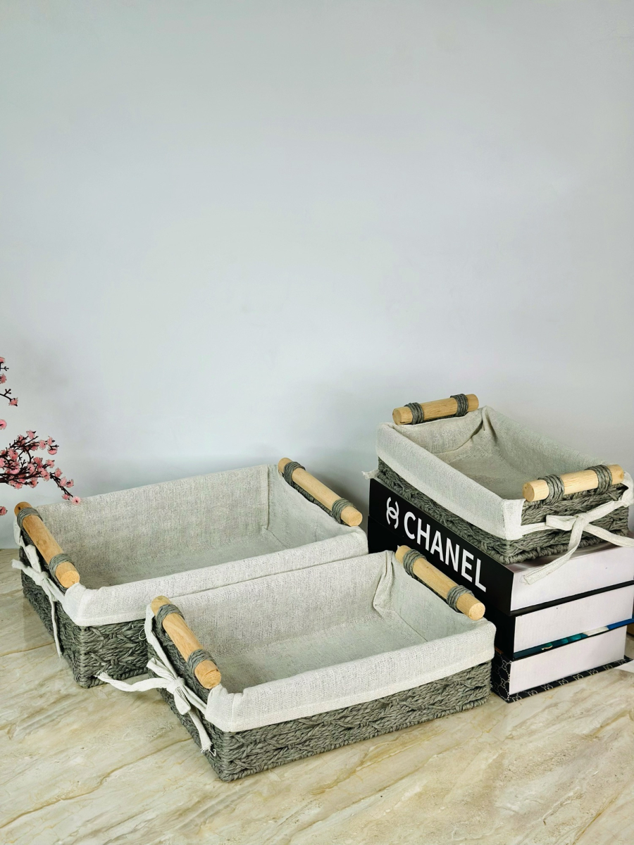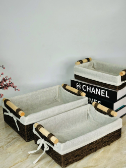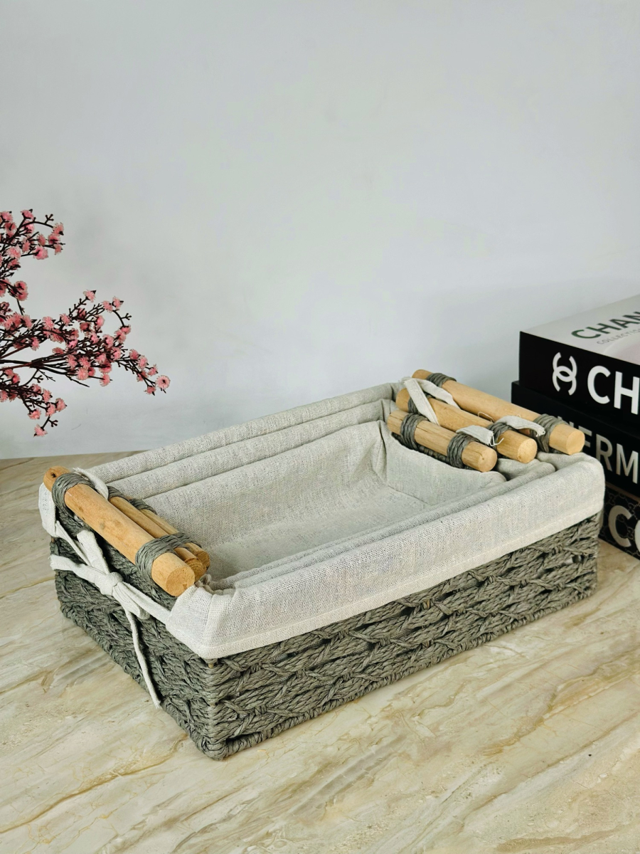 سيت سلة 3 عدد بامبو و اقمشة