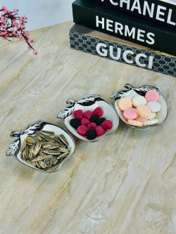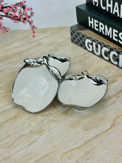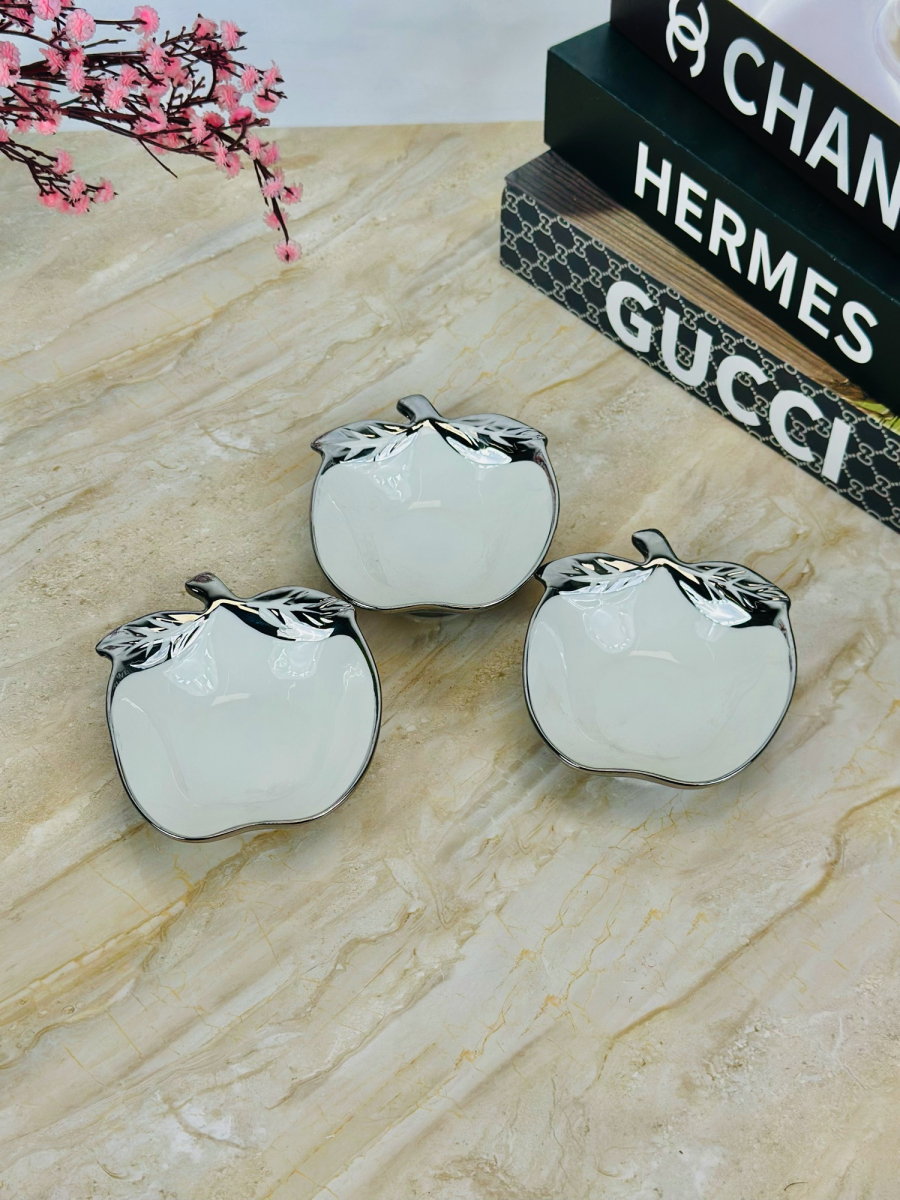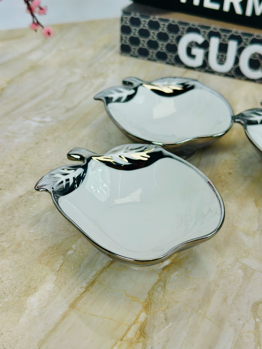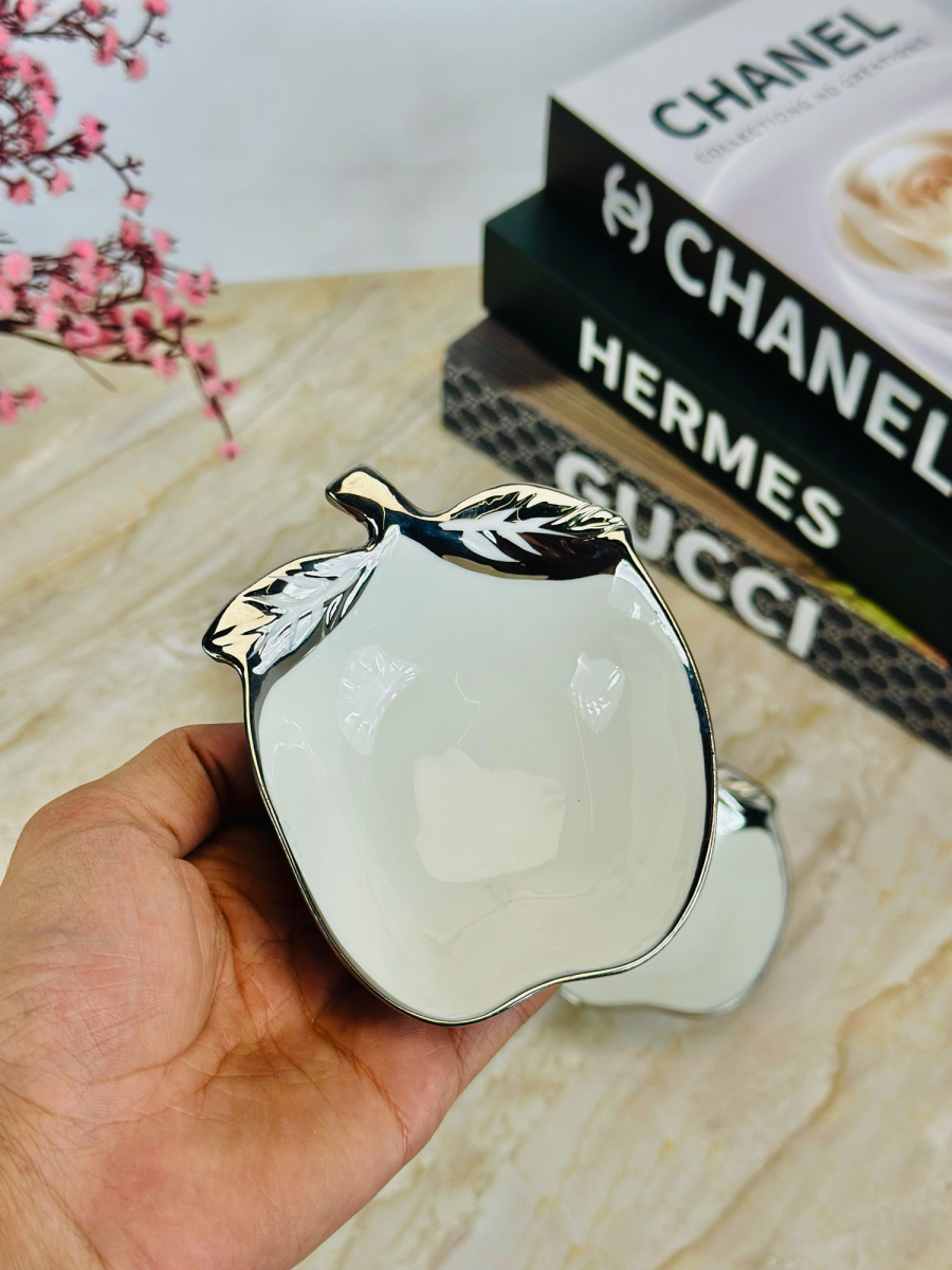وعاء سيراميك شكل تفاح اطار سلفر