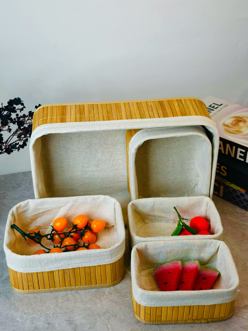 سيت سلة خمسة عدد بامبو و اقمشة
