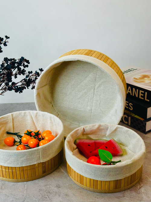 سيت سلة 3 عدد بامبو و اقمشة دائري
