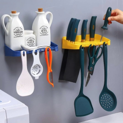 حامل تخزين مثبت على الحائط مع خطافات رف بلاستيك