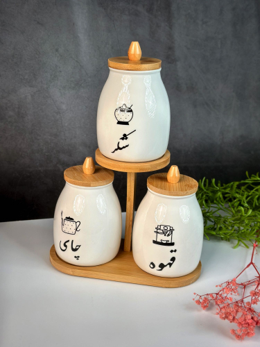 طقم سكر وشايي مع قاعدة بامبو رأس تاج