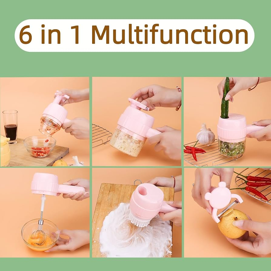 مجموعة قطع الخضروات الكهربائية المحمولة 4 في 1