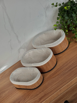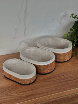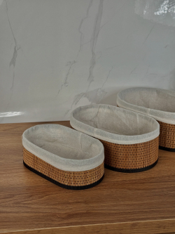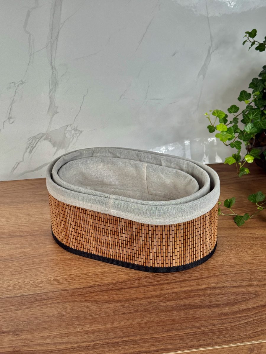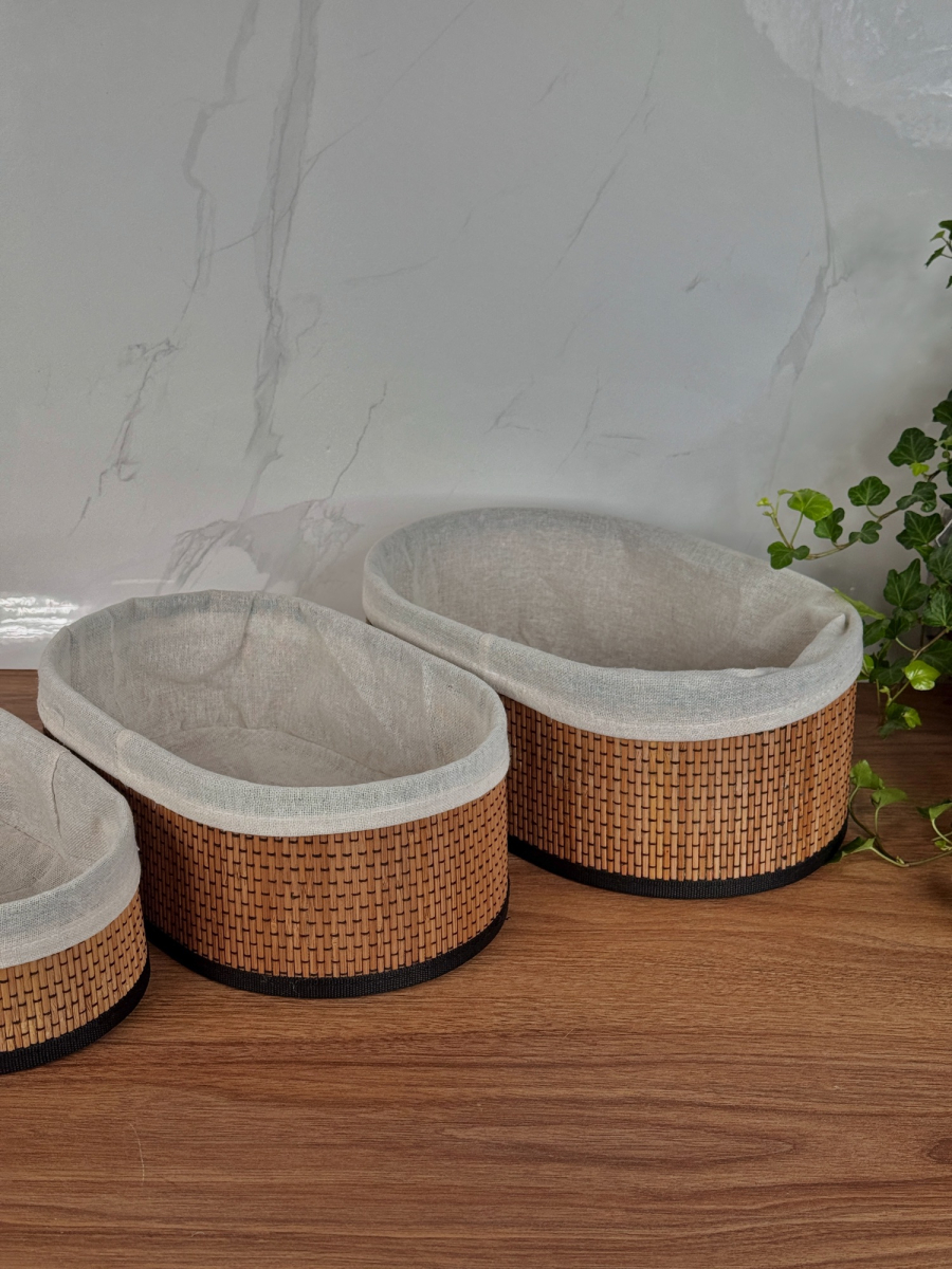 سيت سلة بامبو ثلاثي بيضوي داخل اقمشة