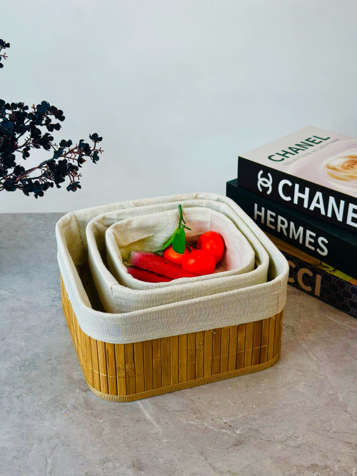 سيت سلة 3 عدد بامبو و اقمشة مربع
