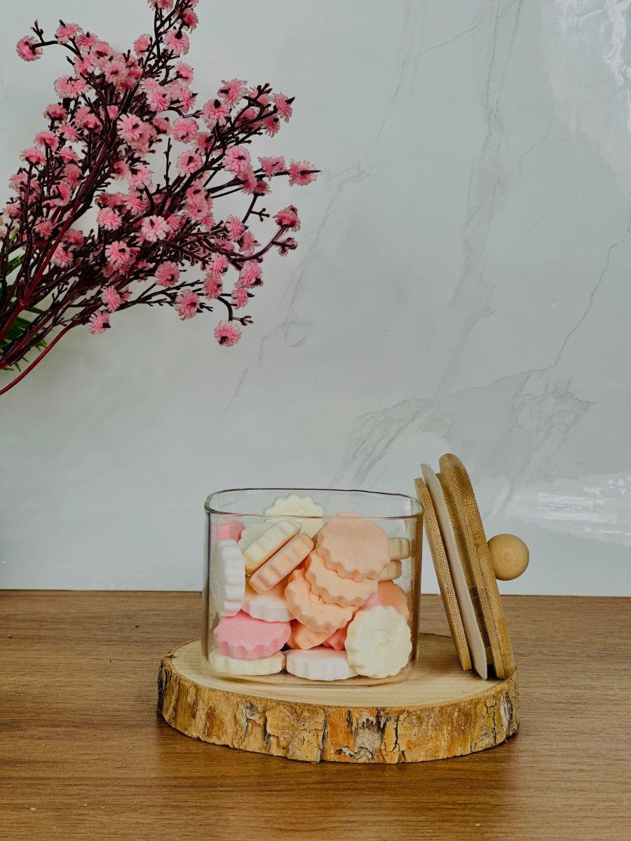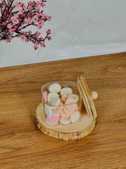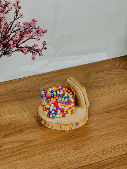 علب اکرلک سكر و بقوليات دائري 9سم قطر 10سم قبق مرمر ذهبي
