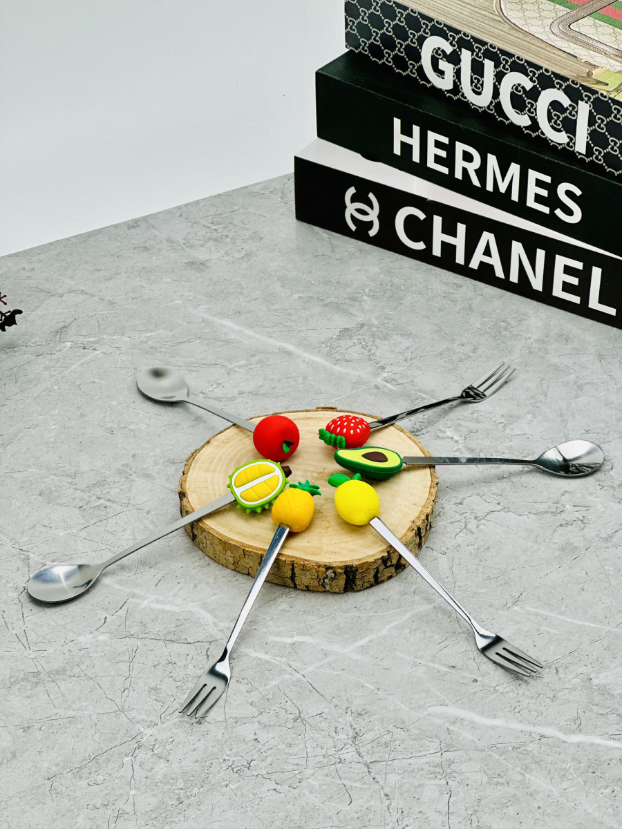 سيت ملاعق و شوكات رأس سليكون فواكهة فيضي