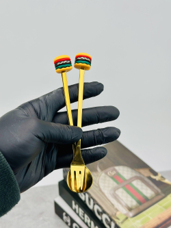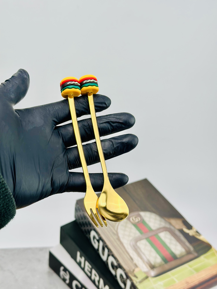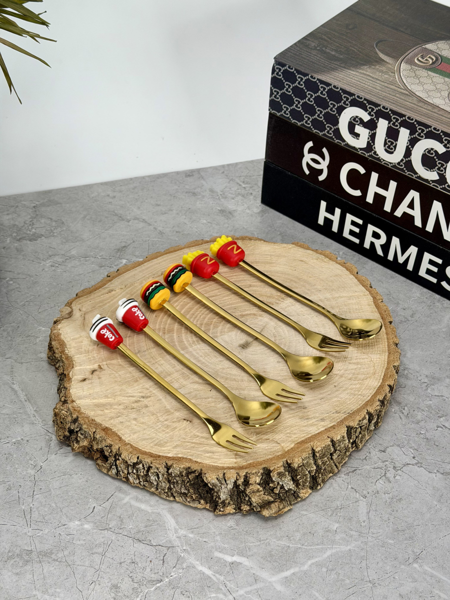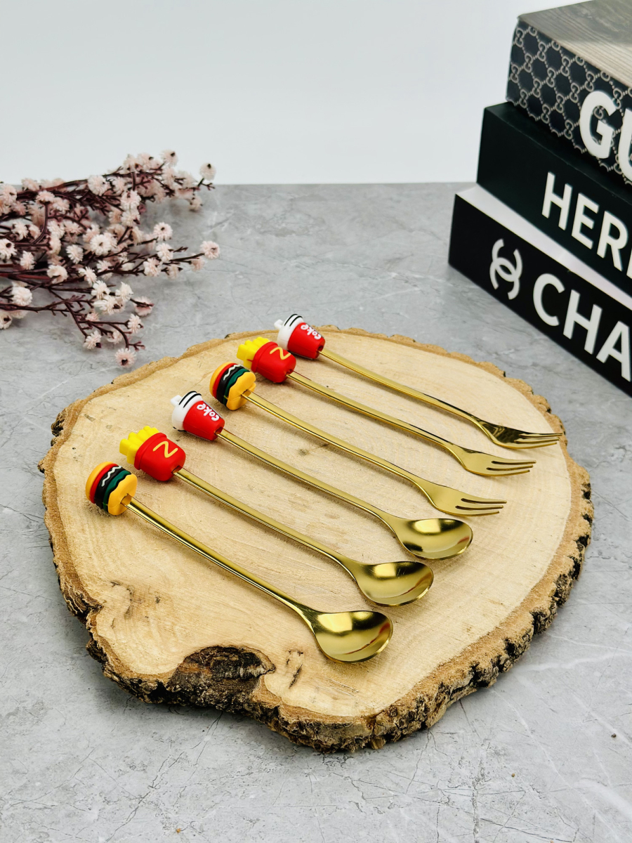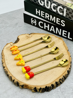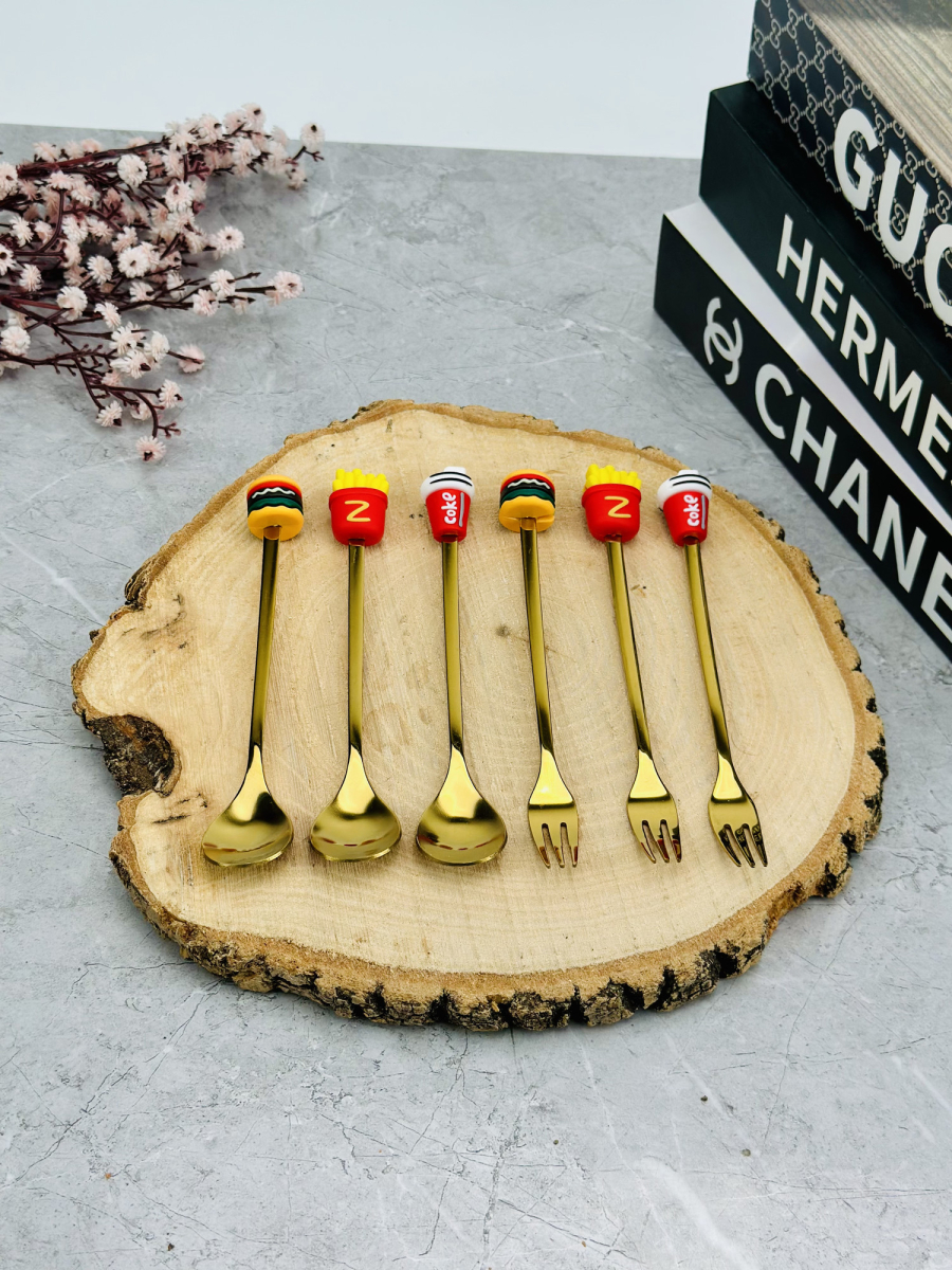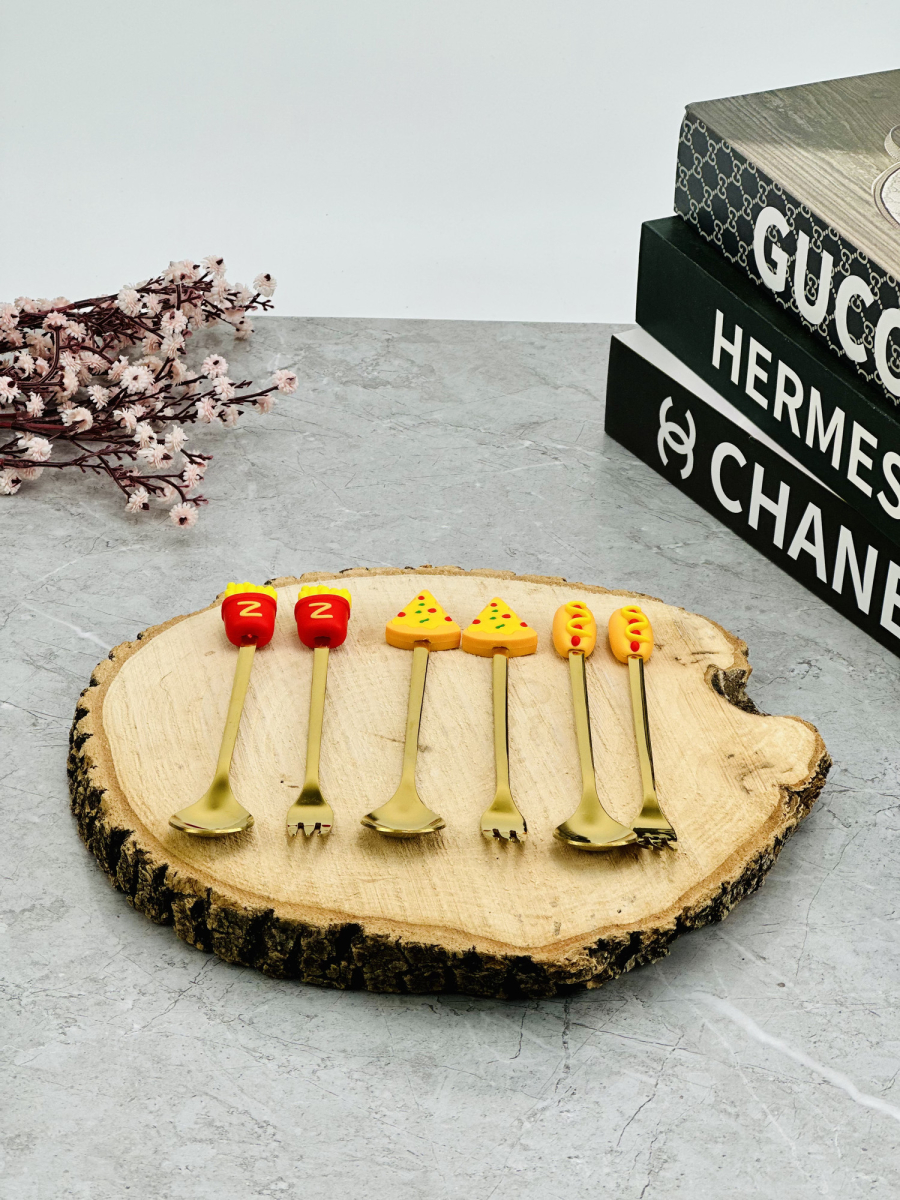 سيت ملاعق و شوكات رأس سليكون فاس فود ذهبي