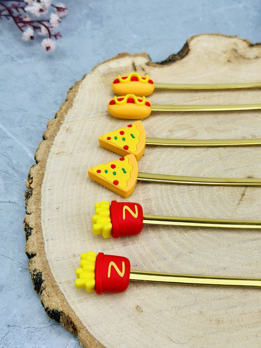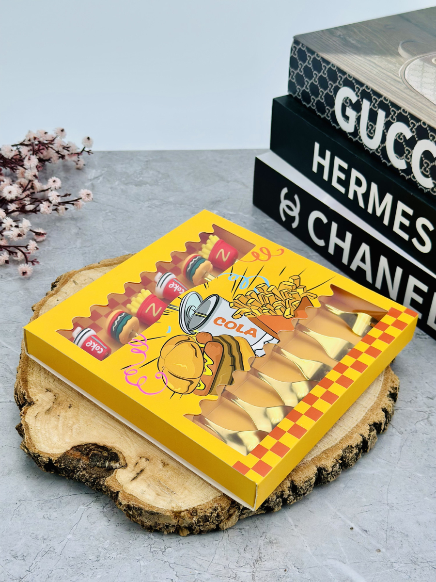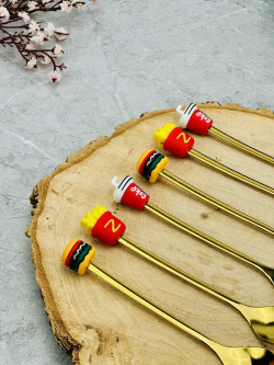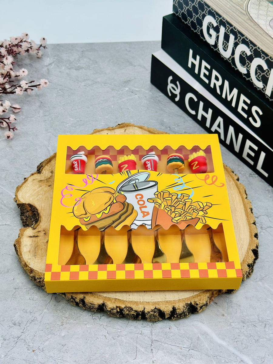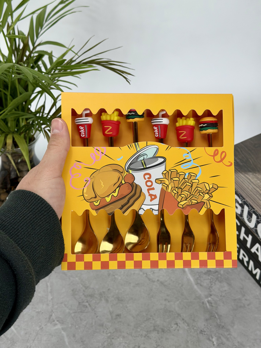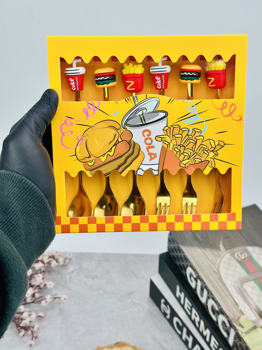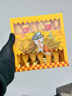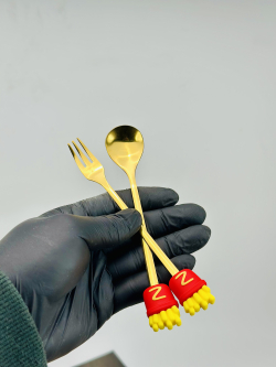 سيت ملاعق و شوكات رأس سليكون فاس فود ذهبي