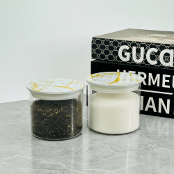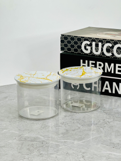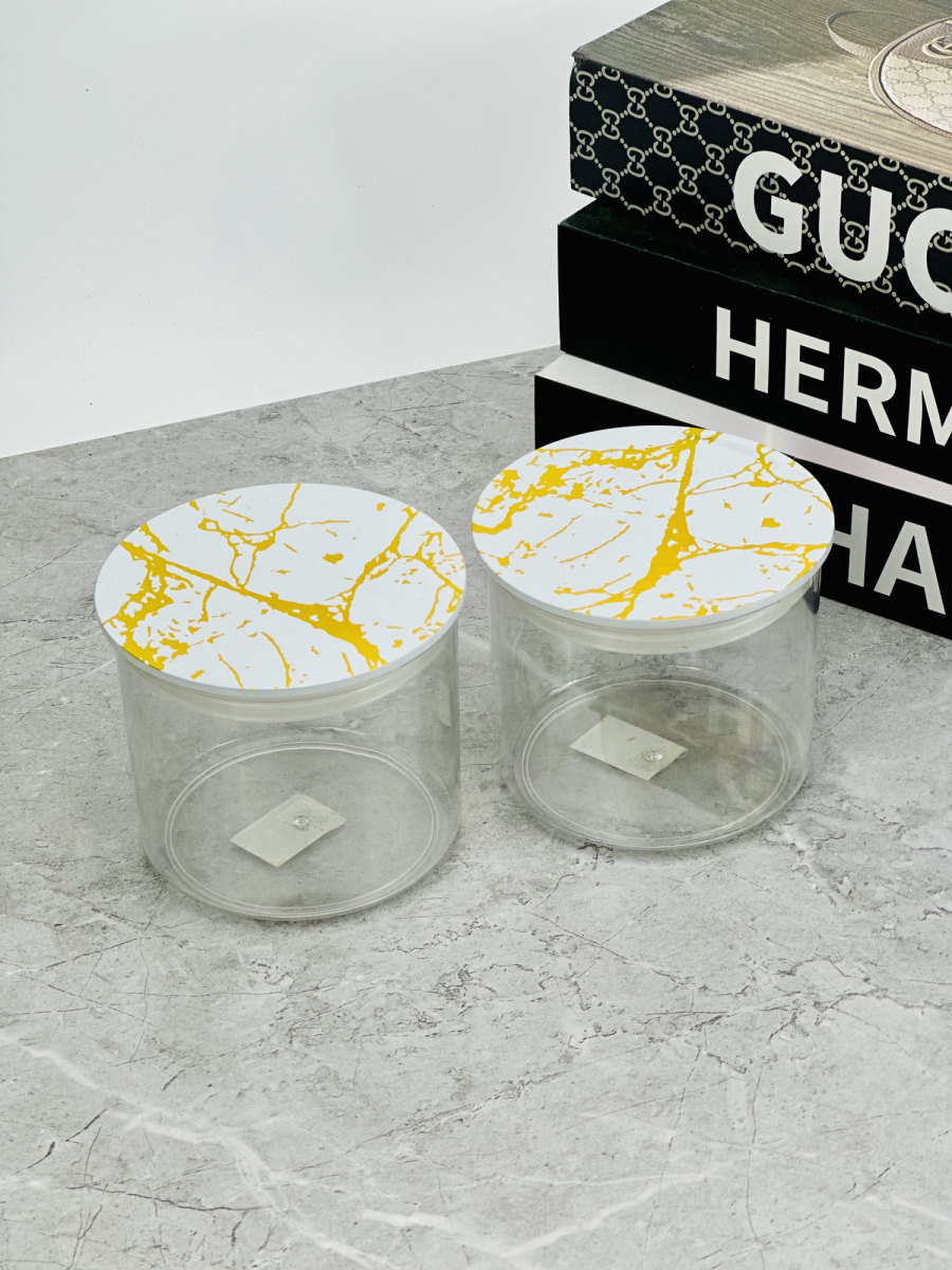 علب اکرلک سكر و بقوليات دائري 9سم قطر 10سم قبق مرمر ذهبي