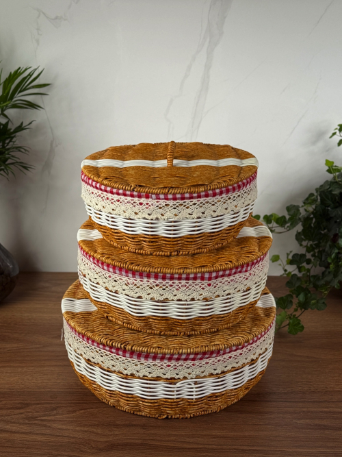 سيت سلة خوص ثلاثي دائري داخل اقمشة اسود