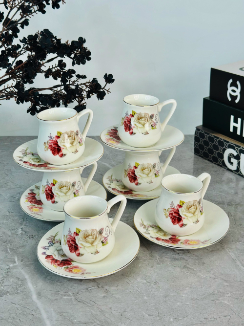 سيت 6 قطعة فنجان و صحن سیرامیک نقش