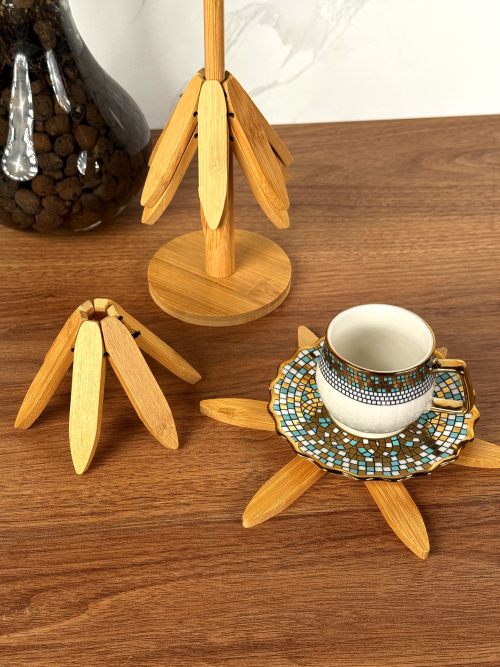 سيت بامبو جوه قوري و جداري 5 قطعة