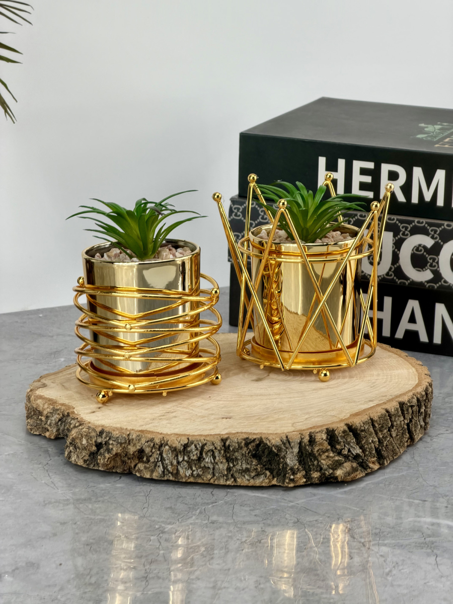 سنادين زرع صناعي بقاعدة ذهبي شكل حلزوني