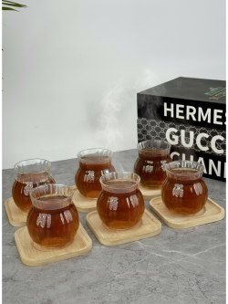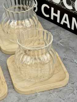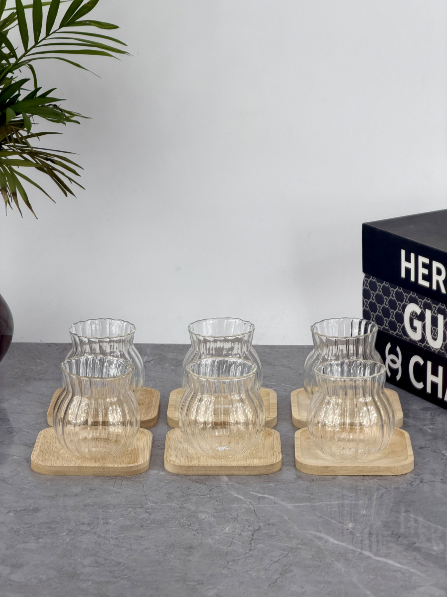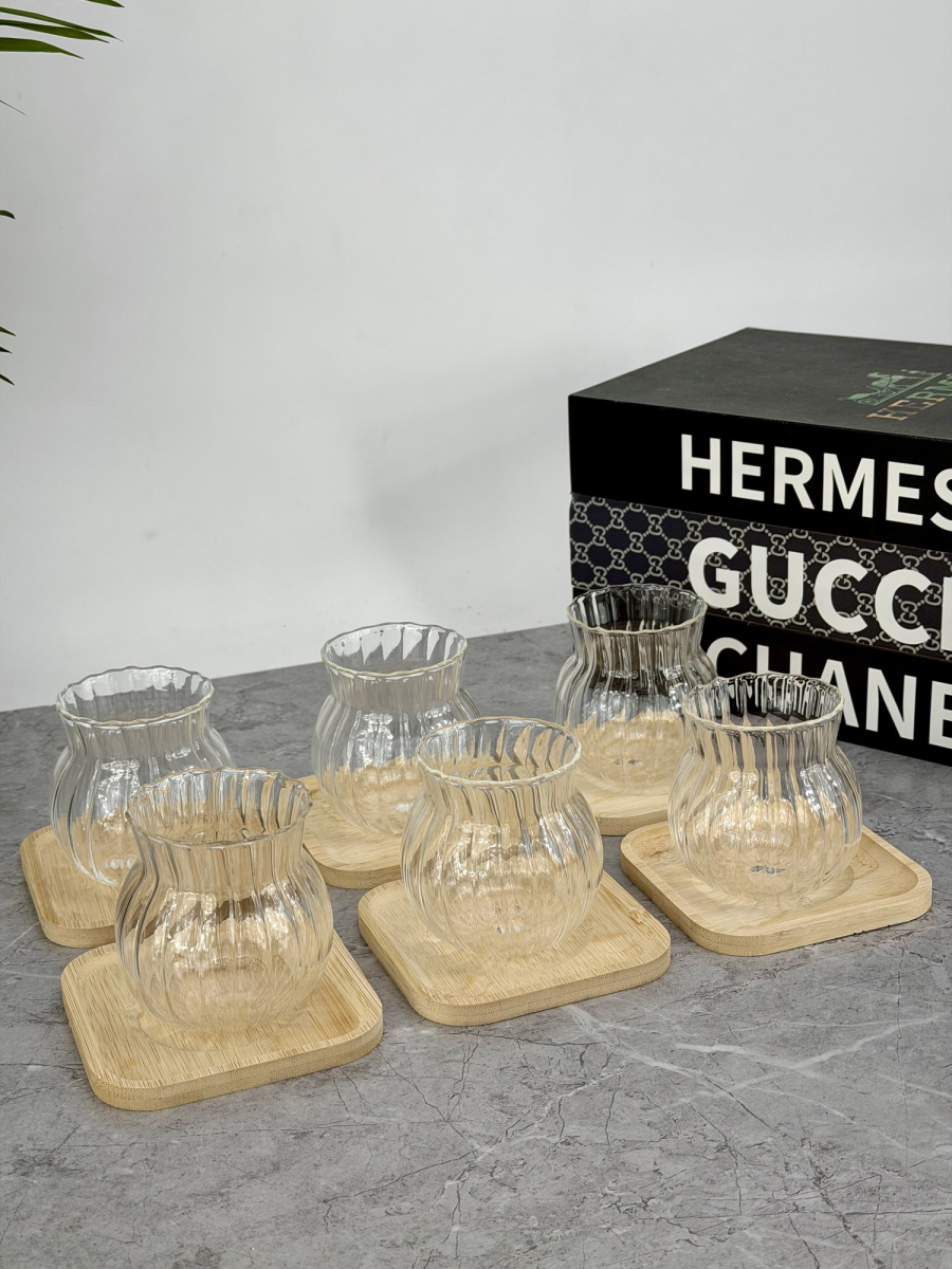 سيت ٦ اكوب مشيف بايريكس و صحن خشب بامبو