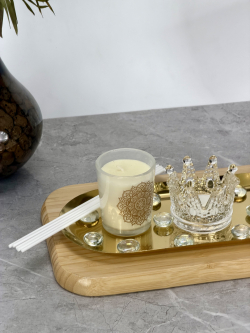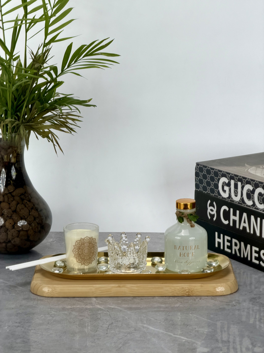سيت سكر و شايي زجاج قاعدة بامبو مربع رمضان