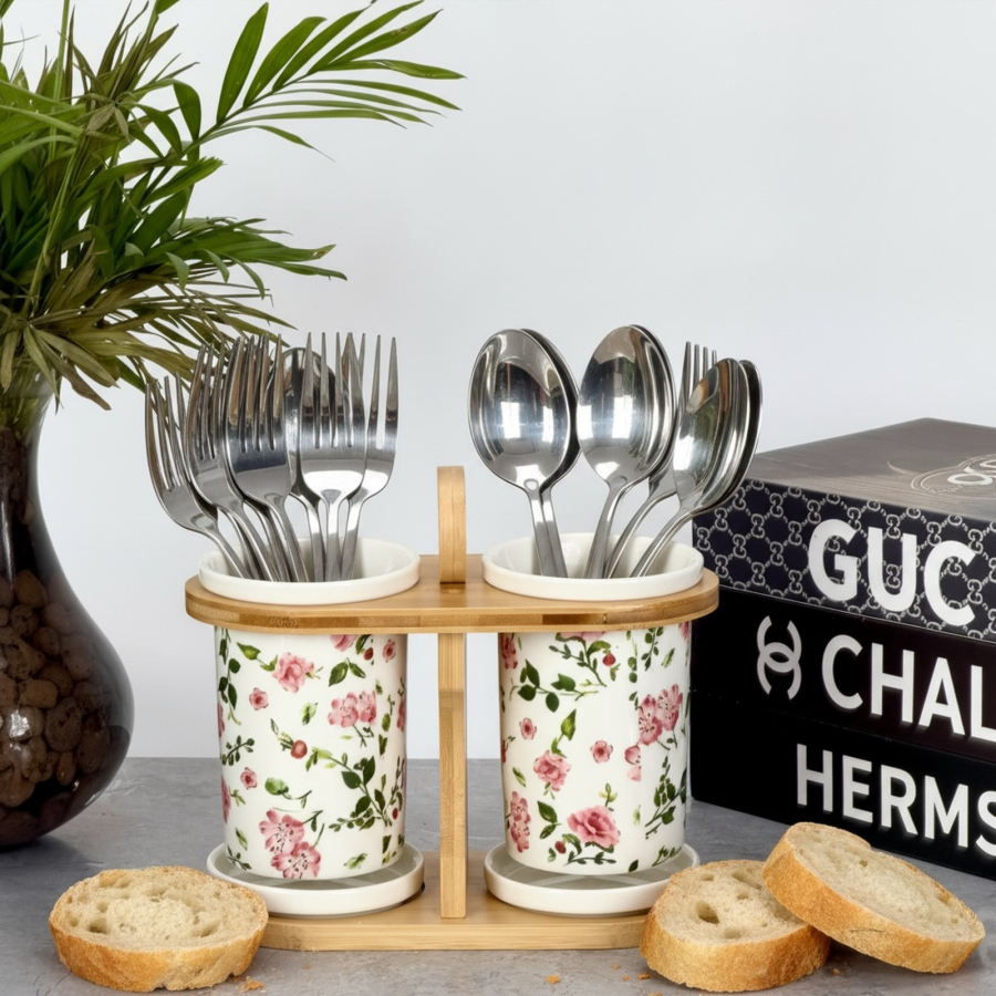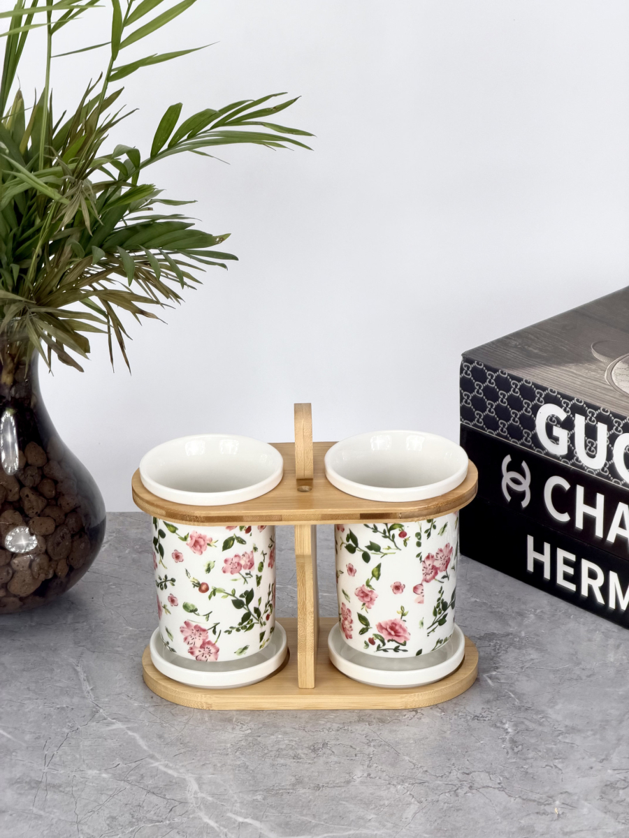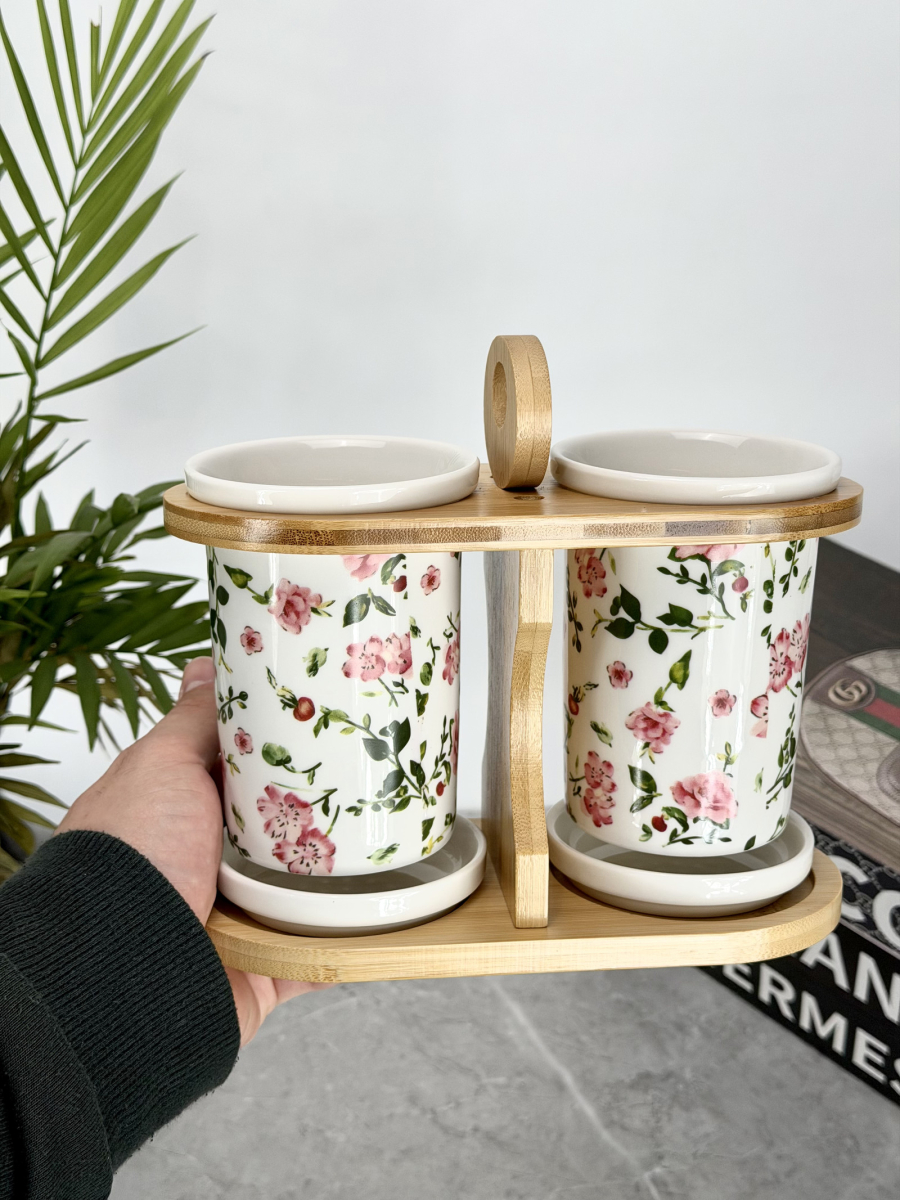 مکان ملاعق سیرامیک زوج ویە قاعدە بامبو وردة