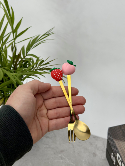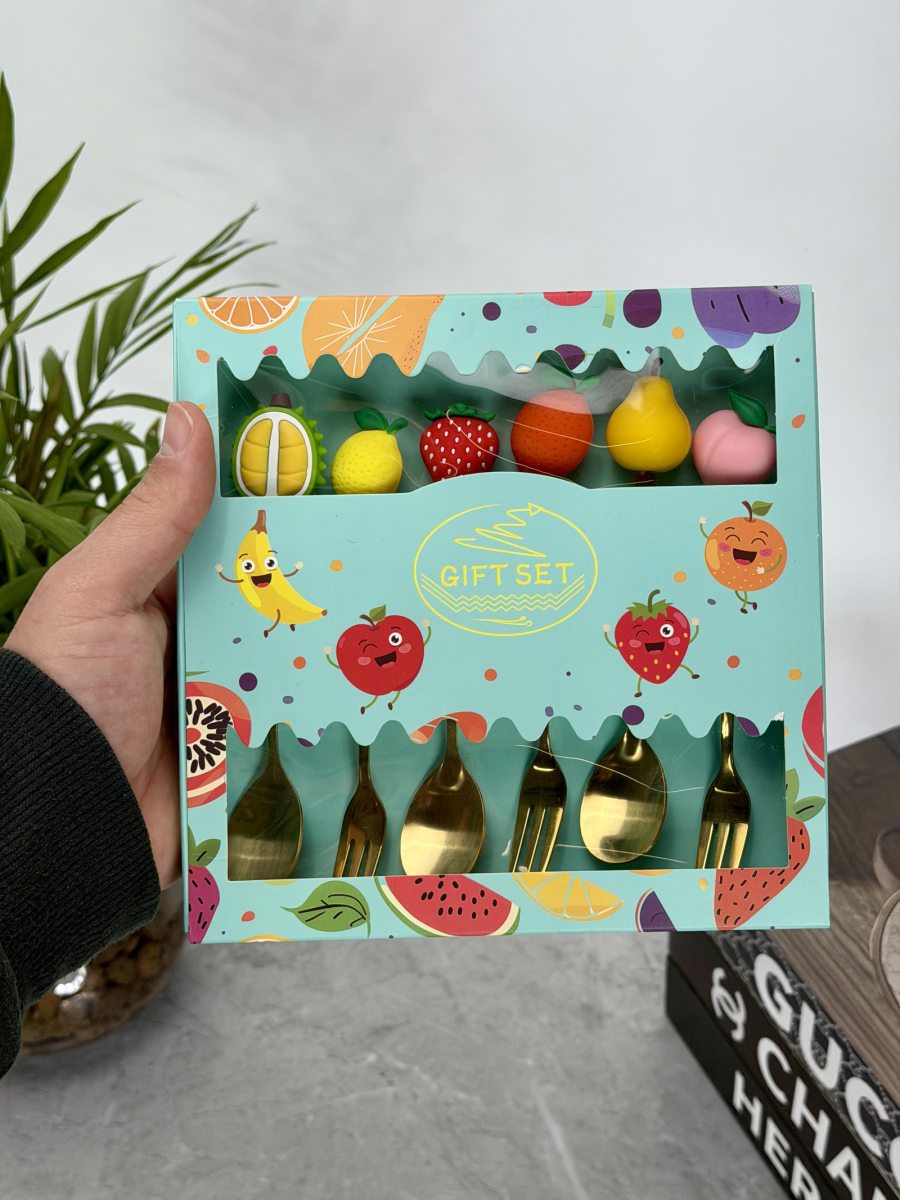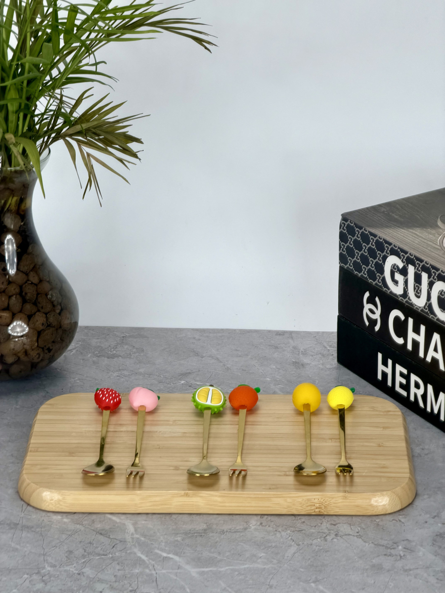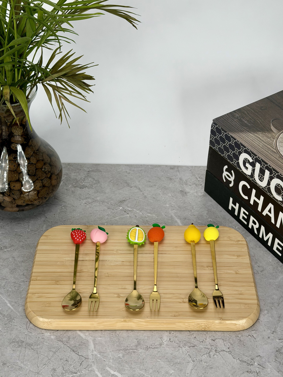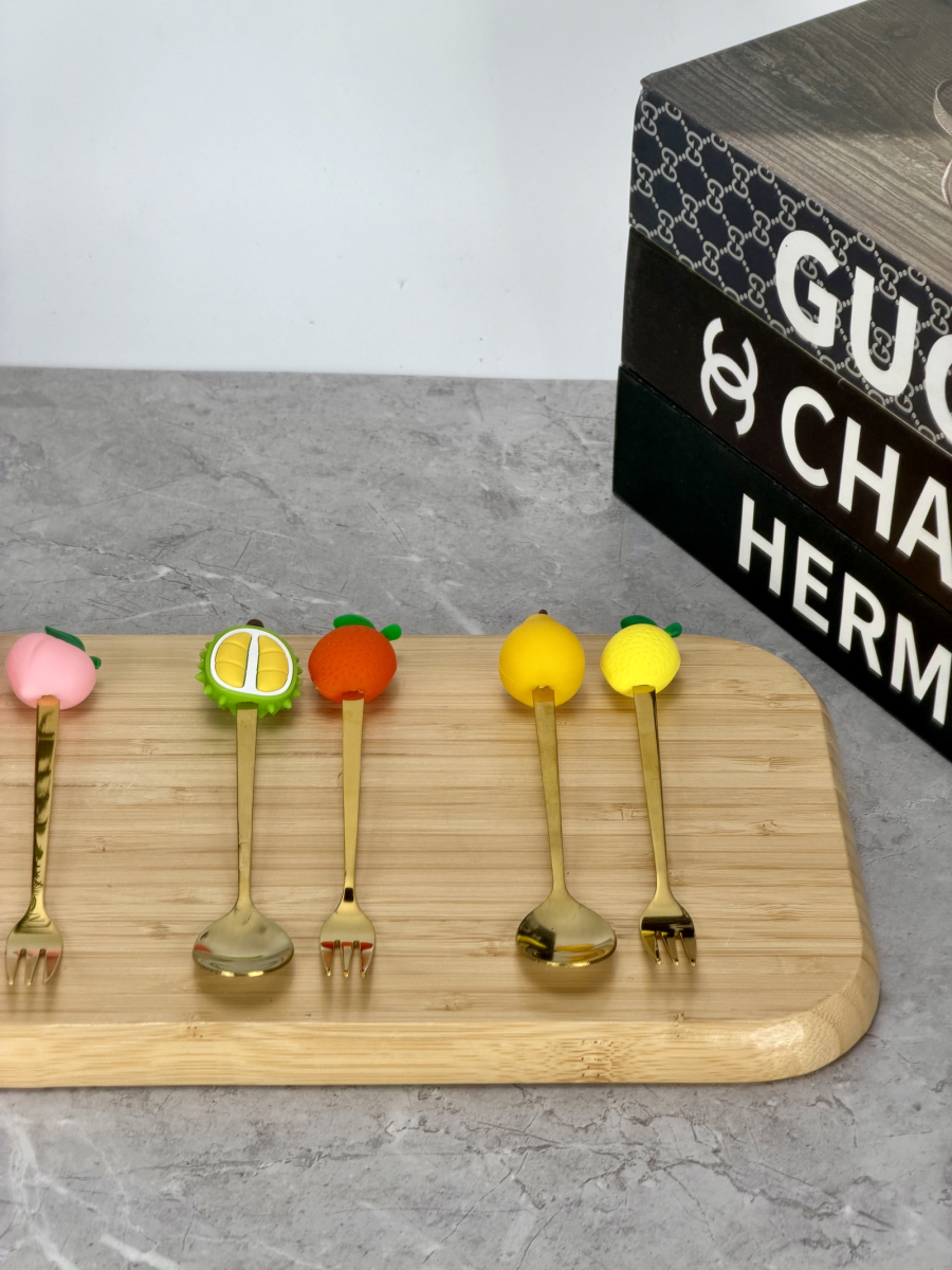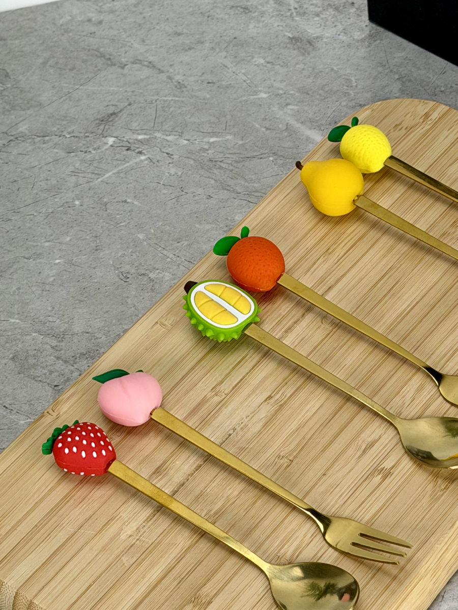 سيت ملاعق و شوكات رأس سليكون فواكهة ذهبي