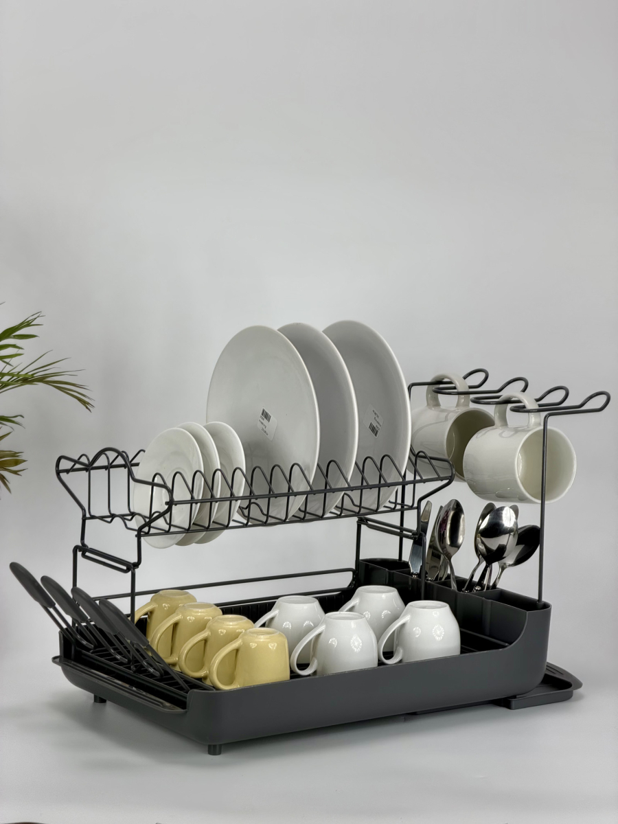 سلە صحون طبقین ابيض و رصاصي