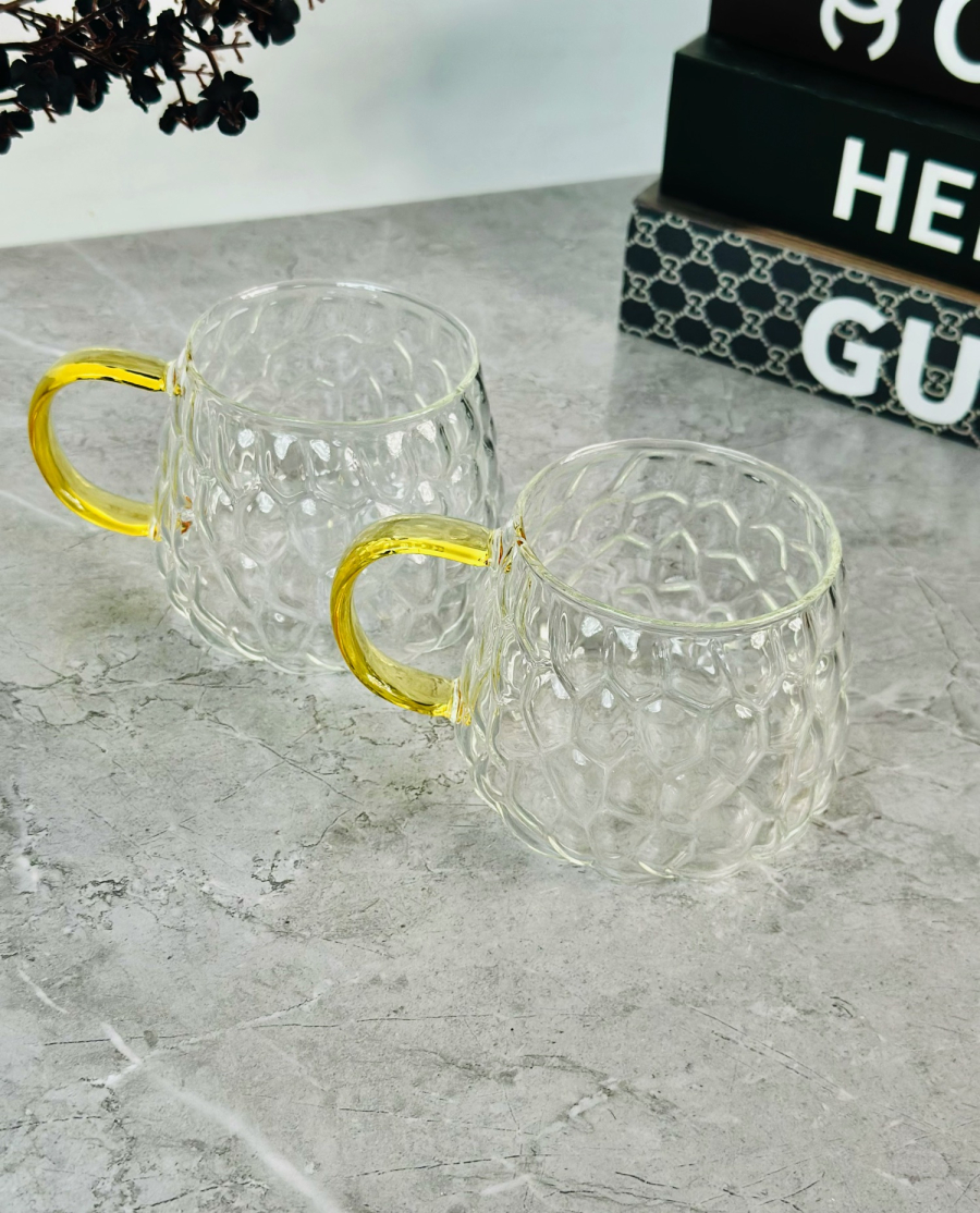 سيت 6 اكوب شايي زجاج اطار ذهبي