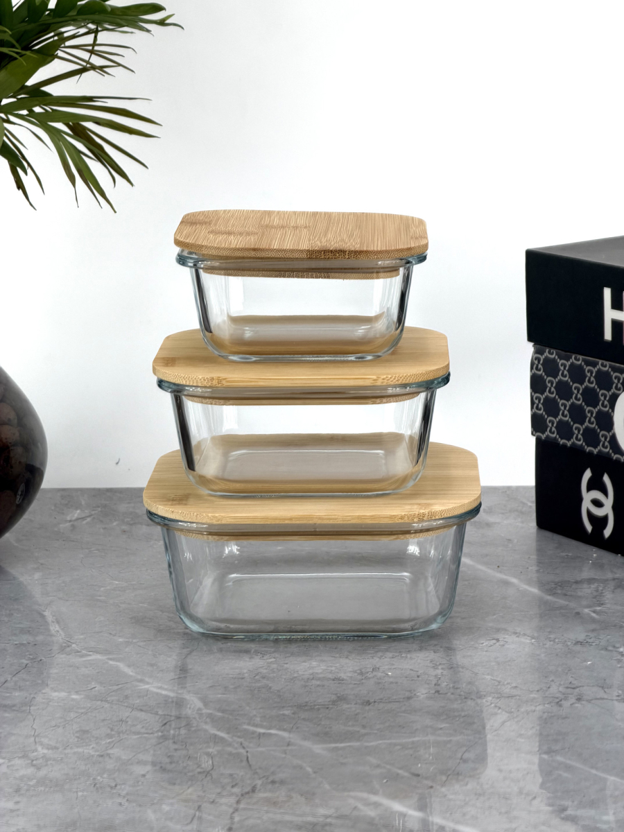 سيت سلة بامبو ثلاثي بيضوي داخل اقمشة