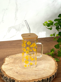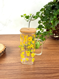 سيت سكر و شايي زجاج قاعدة بامبو مربع رمضان