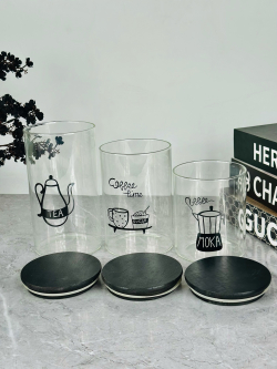 سیت ثلاثي زجاج سکر وشایی ویە ملاعق